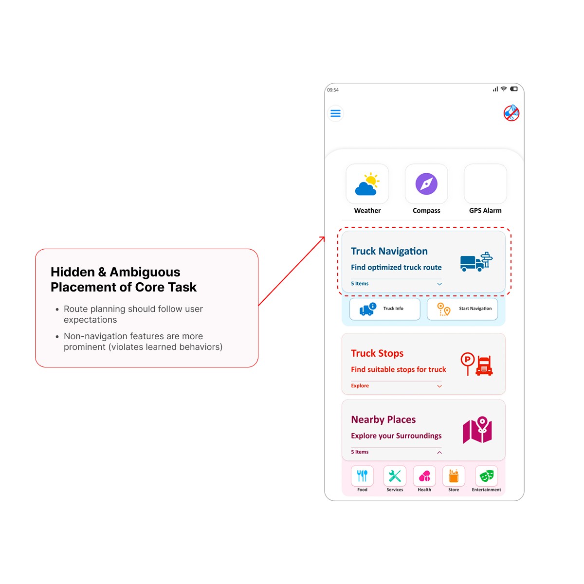 Redesigned a mobile tracking app to improve usability, simplify navigation, and support real-time decision-making for drivers and operators.