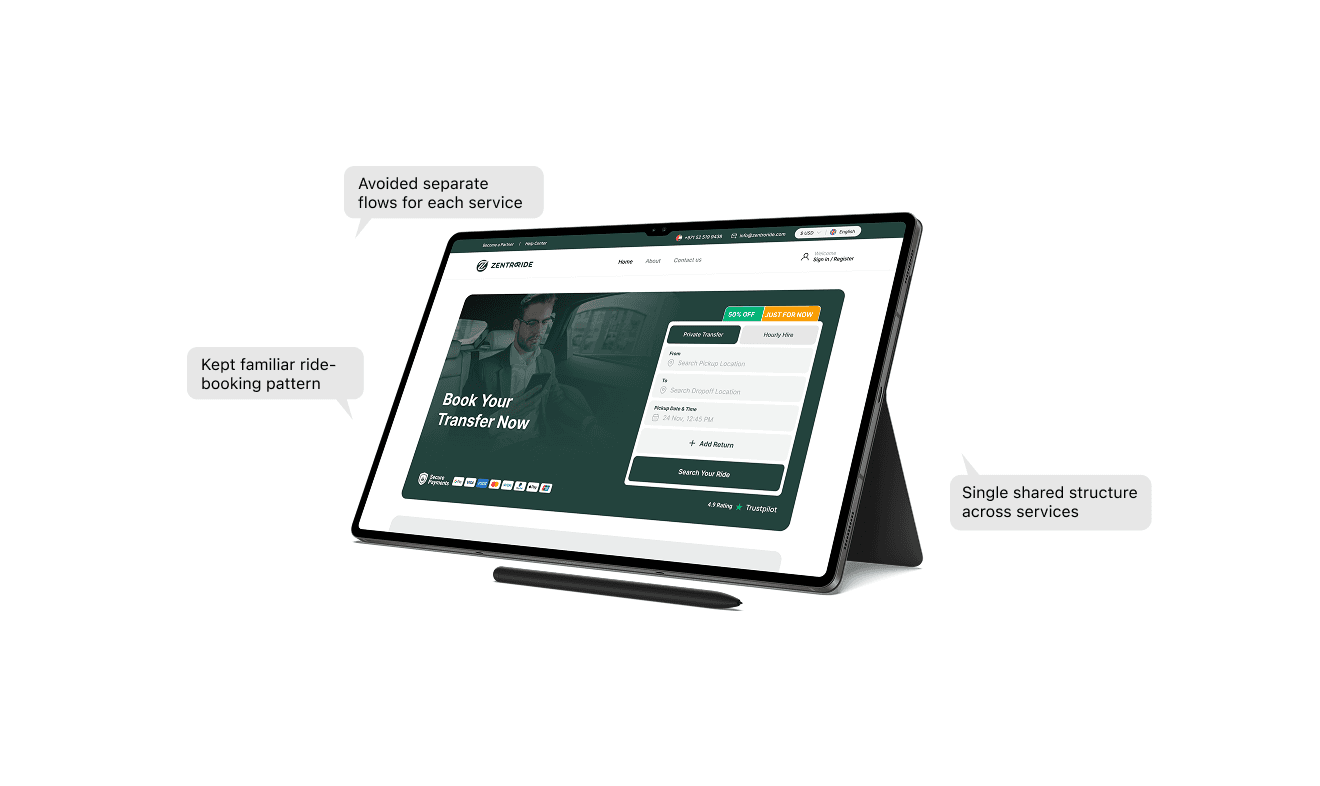 I redesigned the ride-booking experience as a structured product system, focusing on simplifying user journeys and improving clarity across all touchpoints.