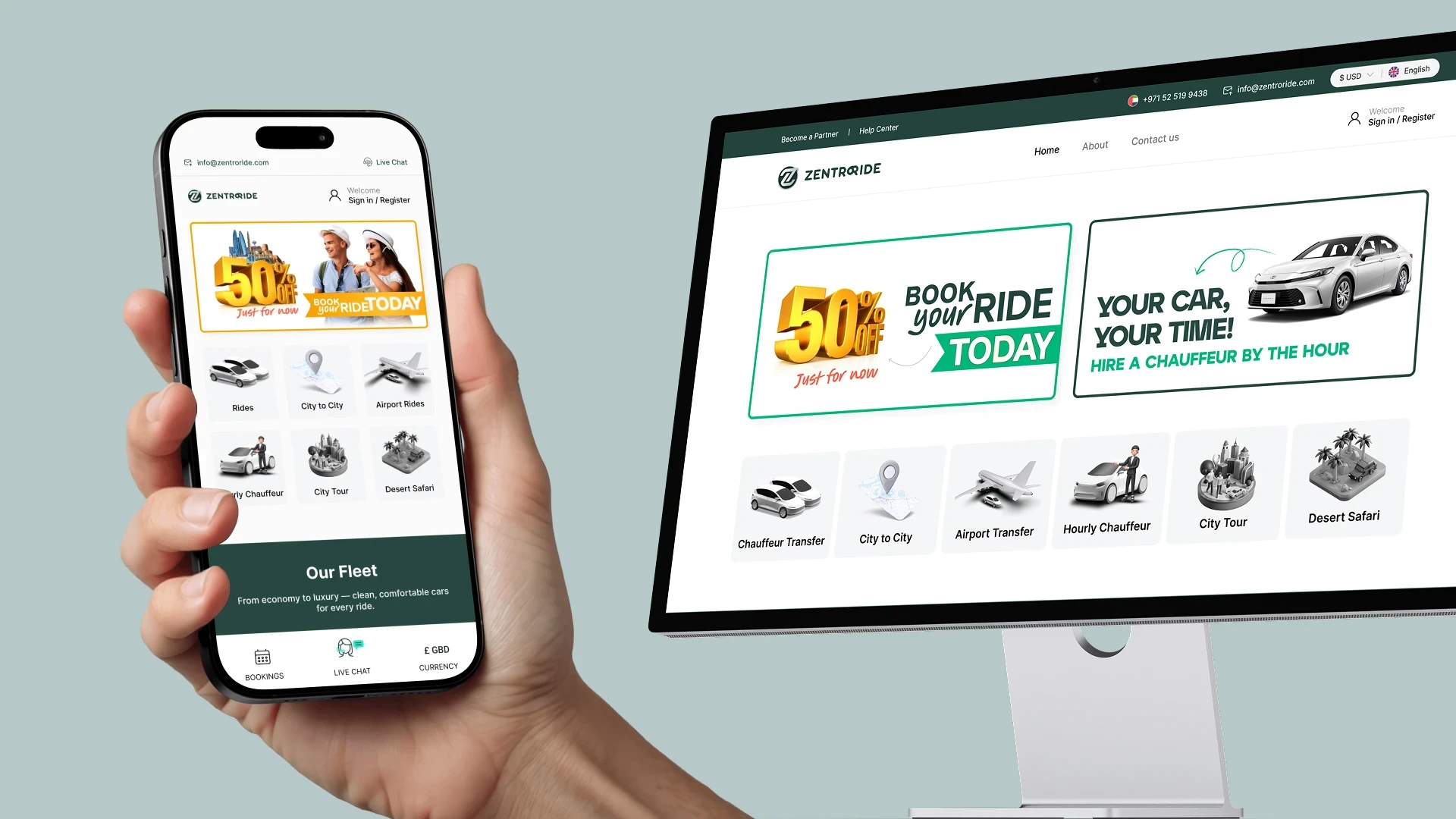 Delivered end-to-end product design across web and responsive platforms, including user, admin, and driver dashboards.